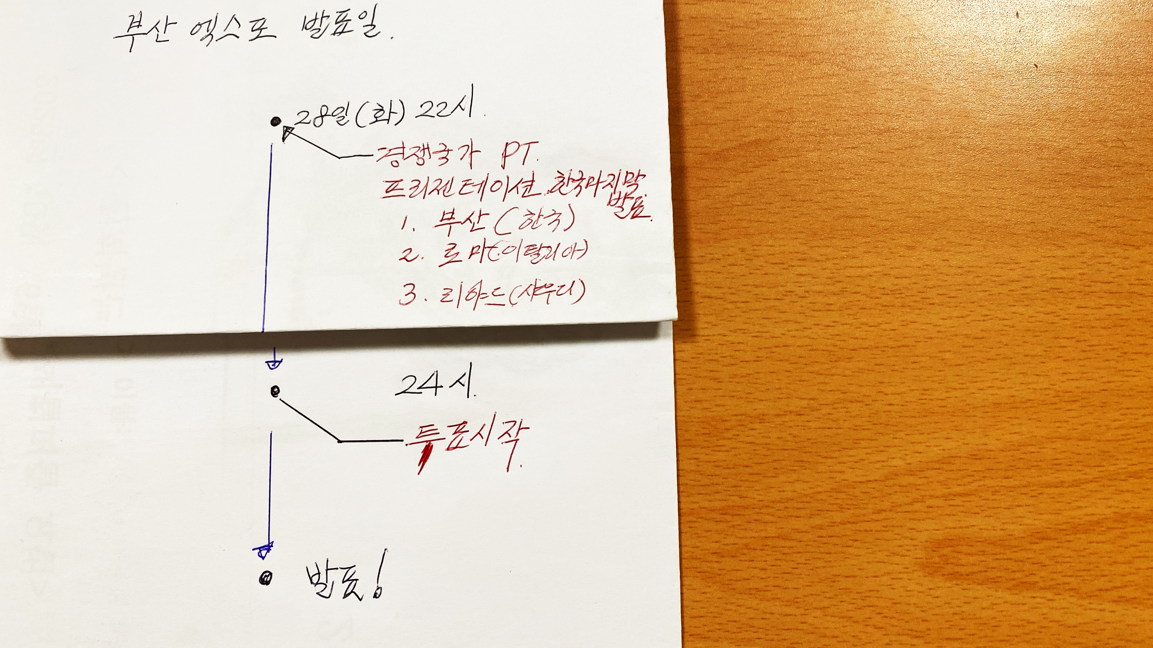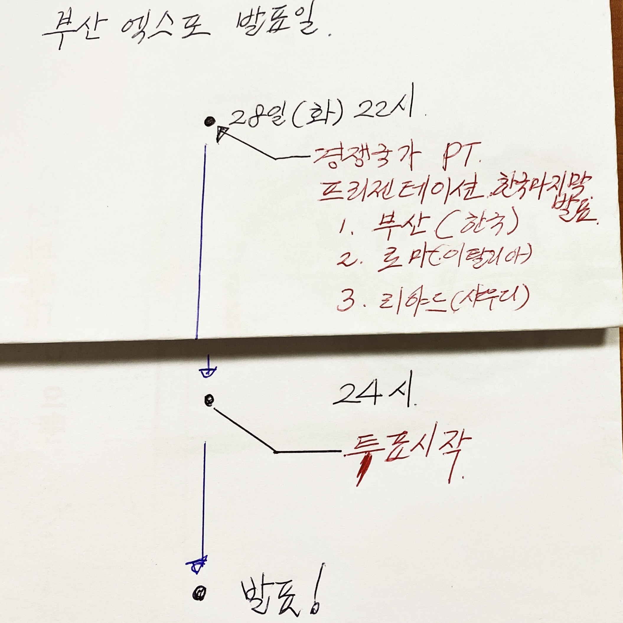 드디어 부산 엑스포 발표 일이 다가왔습니다 내일 새벽이면 부산 엑스포 유치 결정이 내려 집니다 중요한 일정을 정리해 보았습니다.