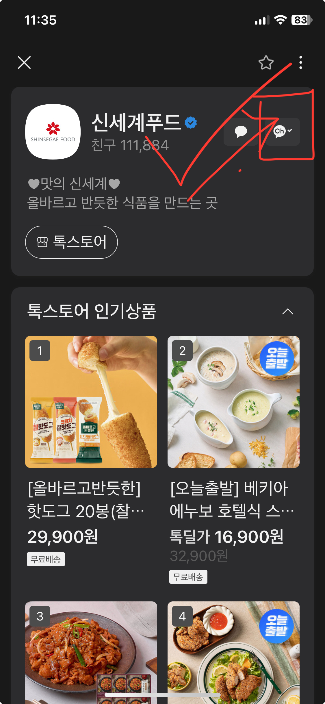 3. 채널 아이콘 터치