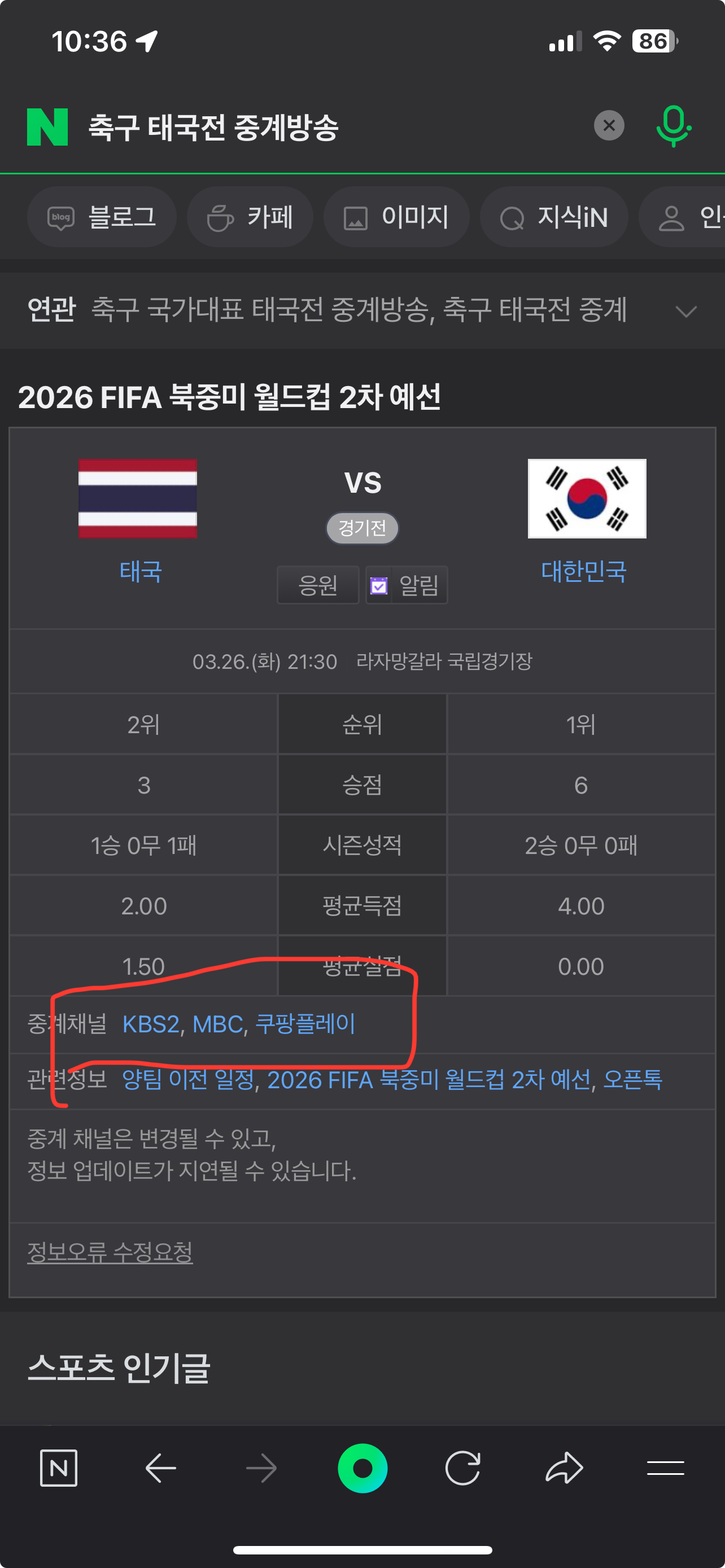 무료로 축구 태국전 보는 방법이 쉽지 않은데요