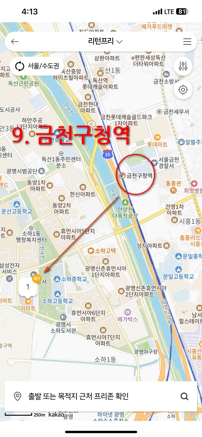 이전 피플카 회사가 트루카로 이름을 바꾸고 공유차 편도대여 서비스를 제공하고 있습니다. 트루카 어플에서 렌터카 편도 무료대여 서비스를 리턴프리라고 합니다. 리턴프리 메뉴에서 픽업지와 반납 지를 알고 있으면 저렴한 가격에 편도대여를 이용할 수 있습니다. 지하철 1호선 서울역 금천구청 구간 픽업지 반납지 위치를 알려드리겠습니다.