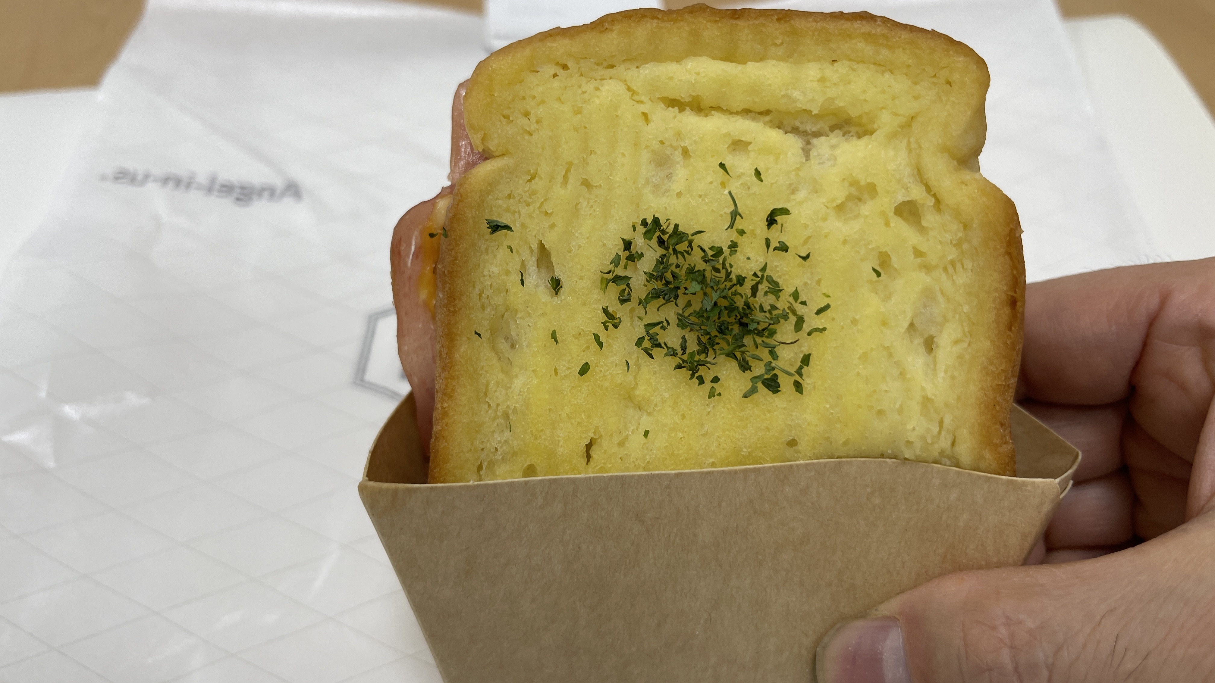 엔제리너스 햄치즈 토스트 이미지컷을 보고 제가 기대했던 것은 바삭바삭한 토스트 빵이었습니다. 그런데 실제로 주문한 메뉴를 받아보니 빵이 부드러웠습니다. 기대했던 바와 차이가 생기니 약간 실망스러운 마음이 올라왔습니다.