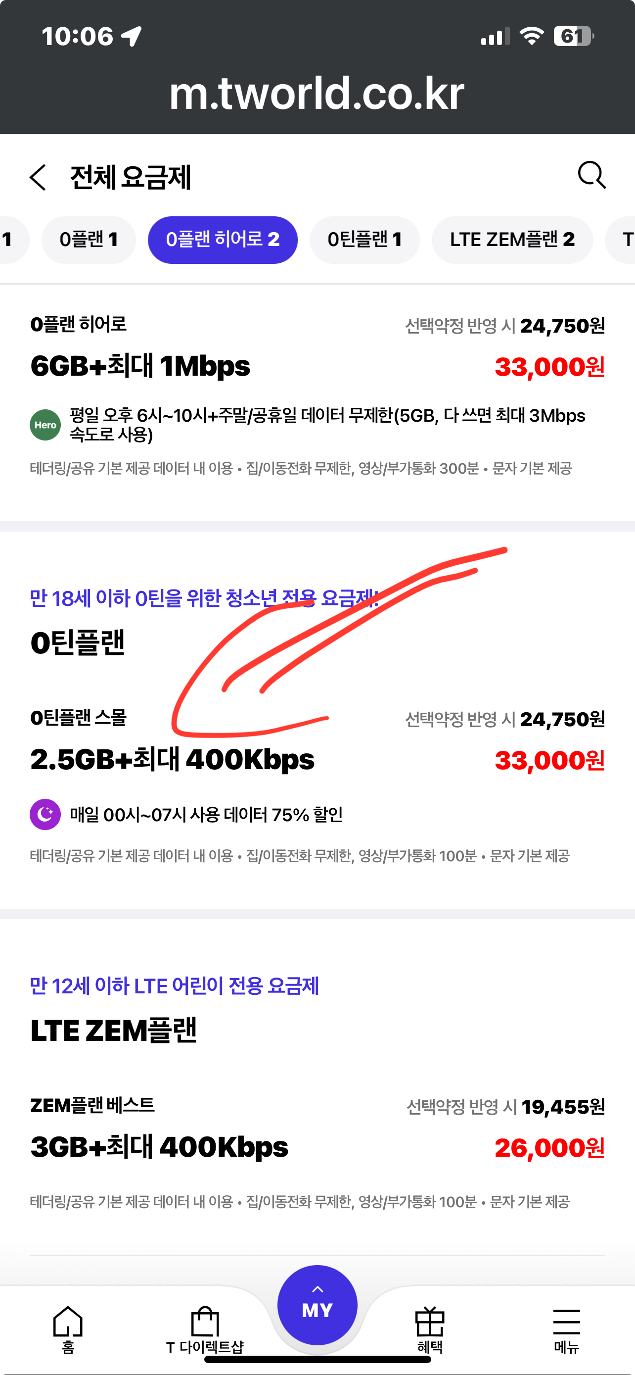 추천 요금제 - 0틴 플랜