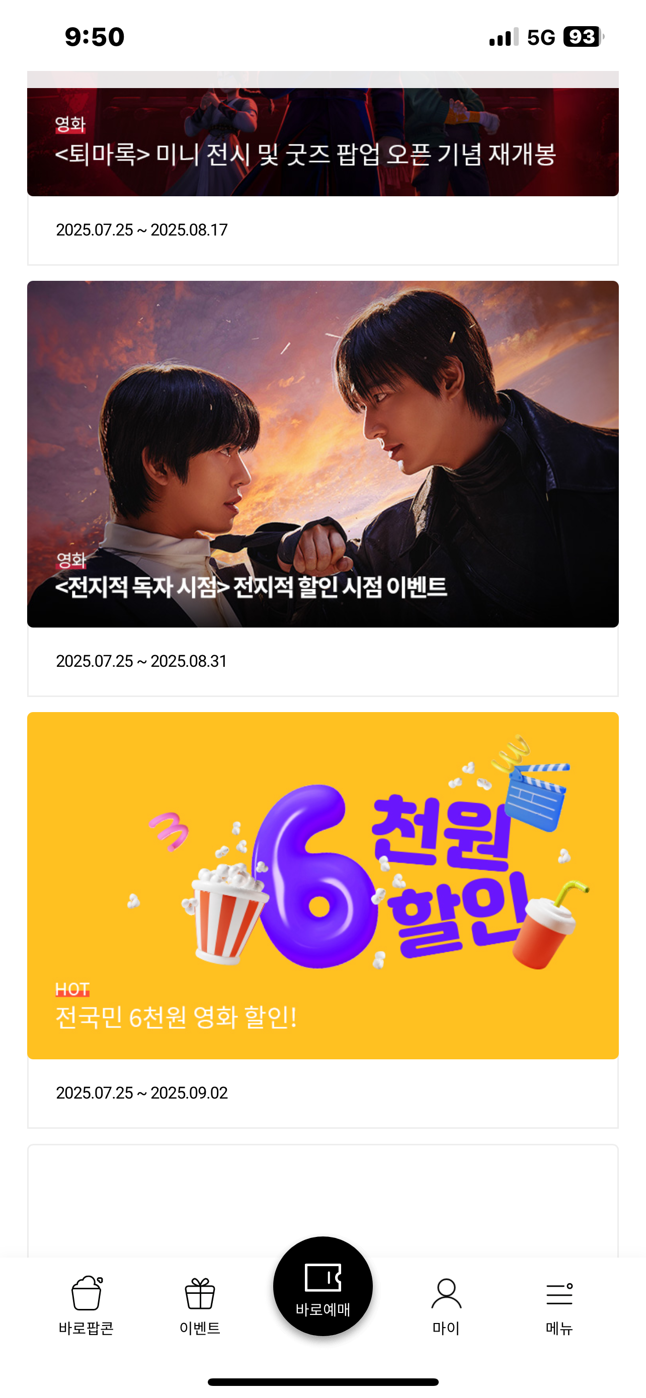 어제(2025. 7. 25)부터 전 국민 영화관람 할인 쿠폰을 선착순으로 배포하기 시작했습니다. 배포 당일에 영화관 앱 들어가기가 거의 불가능 수준이었는데 오늘부터 입장이 가능한 것 같습니다. 할인 쿠폰 다운로드하는 방법을 알려드리겠습니다.