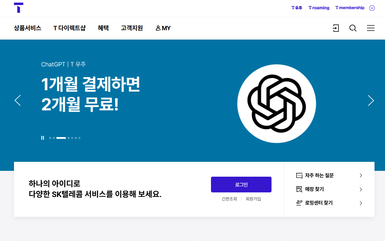 챗gpt 플러스를 첫 구독하고 며칠 지나지 않아 sk에서 프로모션을 진행하고 있음을 발견했습니다. 첫 구독플랜 결제한 사람에게 2개월 무료로 쓸 수 있도록 지원을 해준다고 합니다. 이런 상황에서 기존 구독을 유지할 이유가 없어진 것입니다. 계정을 바꿔서 구독을 처음 시작할 결심을 합니다.